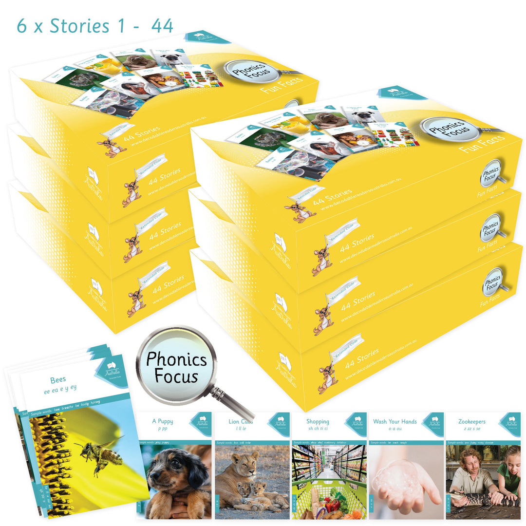 Combined Extended Code Phonics Focus Pack (Stories + Fun Facts)- Classroom Guided Reading Set (88 Texts x 6 sets)