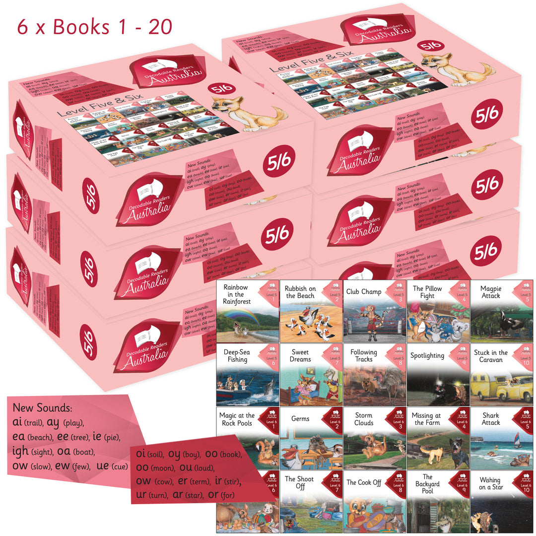 Level 5 & 6 are a combined set of 20 books which introduce more complex sounds, new vocabulary and include a reduced number of pictures to build confidence in reading longer texts. The pre-reading activities hep to activate prior knowledge and introduce new vocab. The post-reading activities include questions to ensure children have comprehended the text and a revision of new vocab.