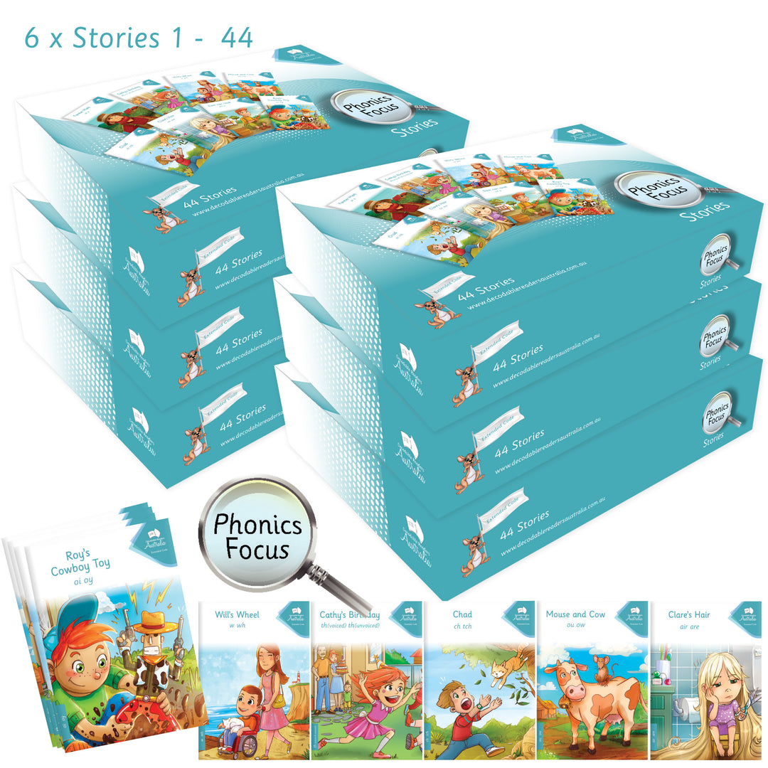 Extended Code Phonics Focus Stories- Classroom Guided Reading Set (44 stories x 6 sets)