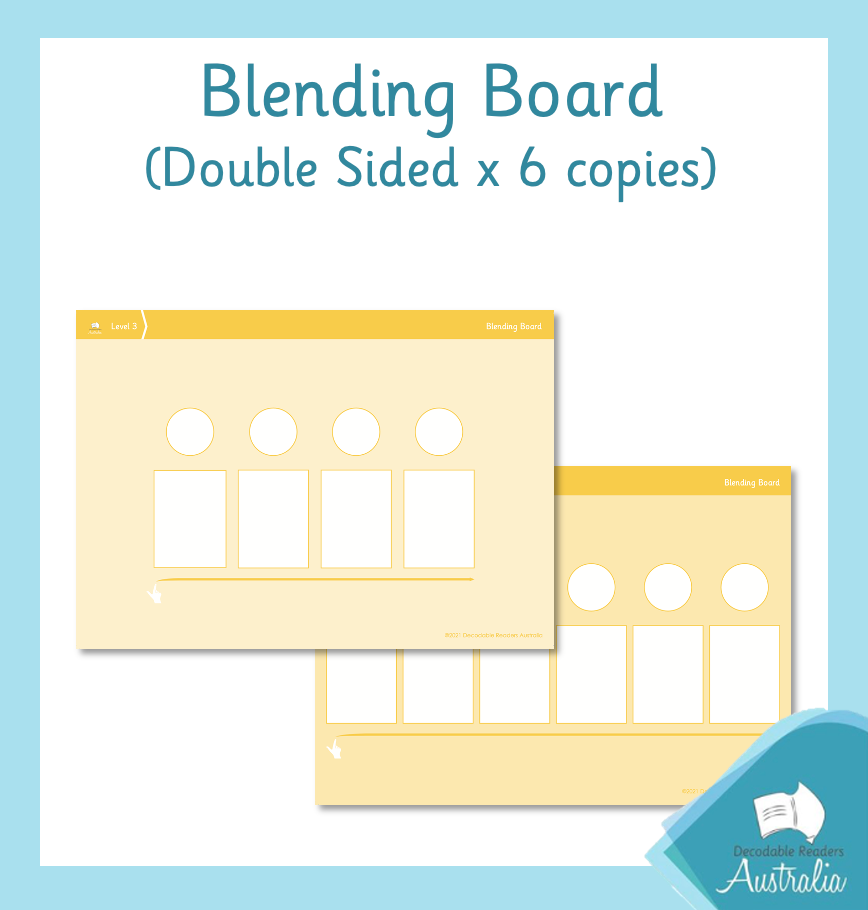 6 x Blending Boards (double sided with 4 Elkonin boxes on one side and 6 Elkonin books on the other side for larger words)
