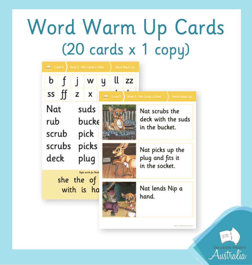 20 x Word Warm Up Cards (double sided) 1 copy of each. Each card is connected to the Level 3 books.
