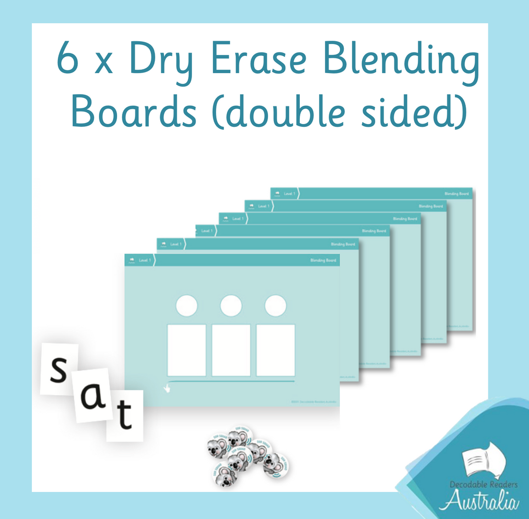 6 x Blending Boards (double sided with 3 Elkonin boxes on one side and 5 Elkonin books on the other side for larger words)
