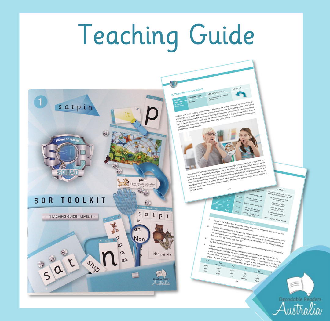 1 x Step by step teaching guide to support the teaching (Level 1). Teaching guide goes through developmental progressions - Learning speech sounds then progressing to words, sentence, text and finally fluency.