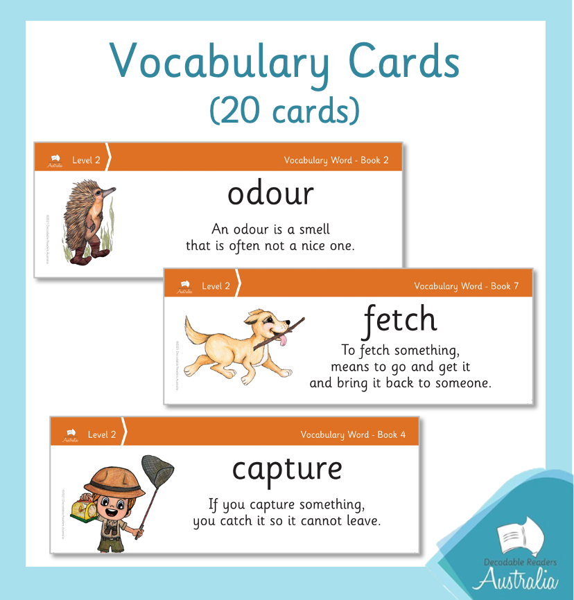 20 x Word Warm Up Cards (double sided) 3 copies of each (60 cards). Each card is connected to the Level 2 books.