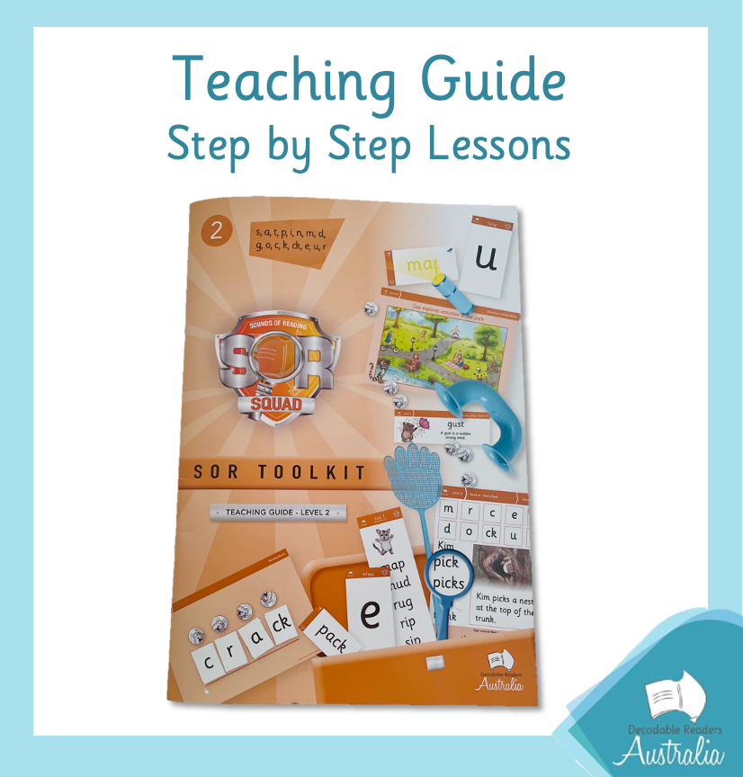 1 x Step by step teaching guide to support the teaching (Level 2). Teaching guide goes through developmental progressions - Learning speech sounds then progressing to words, sentence, text and finally fluency.