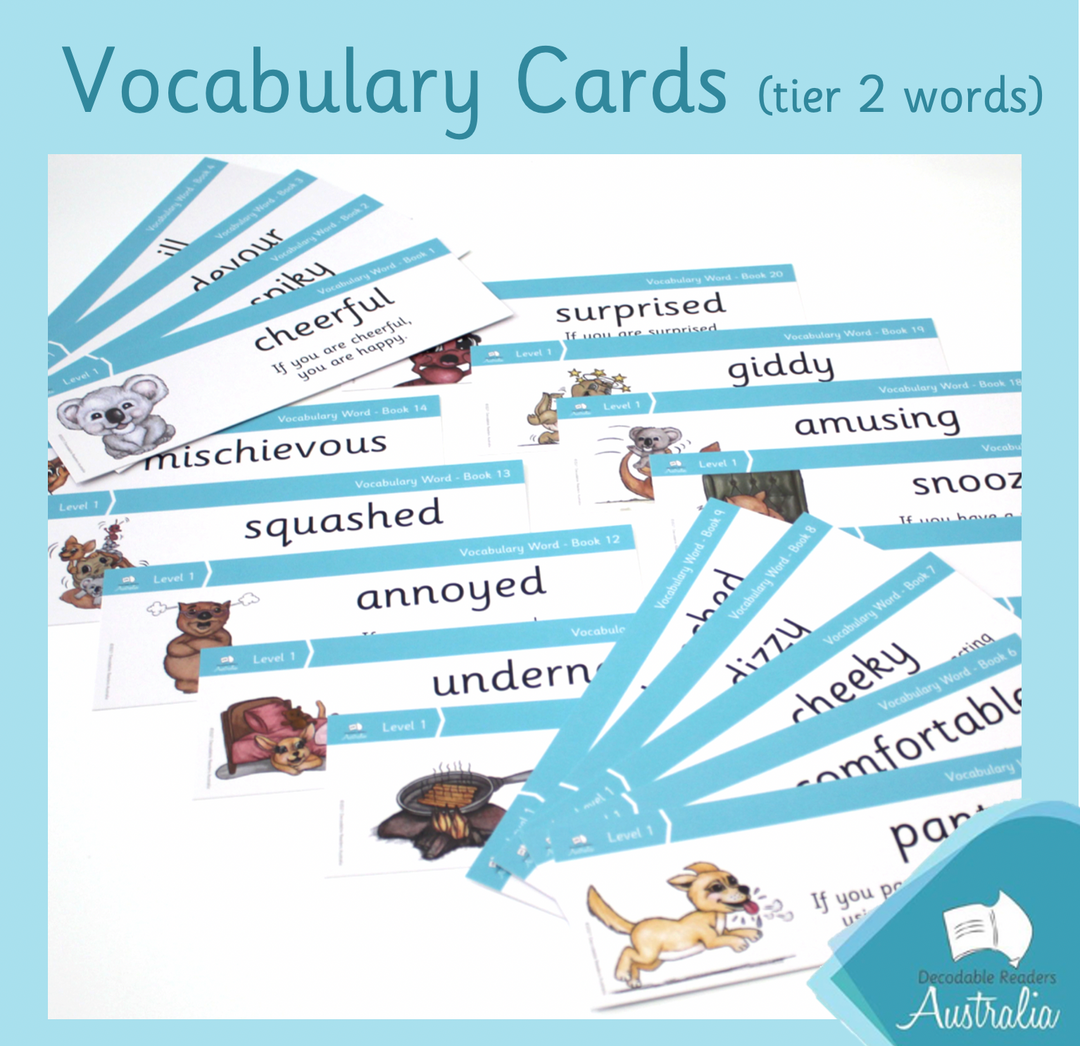 20 x Word Warm Up Cards (double sided). Each card is connected to the Level 1 books.